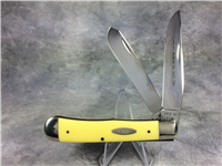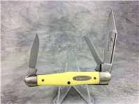 3-1/4 inches closed. 5-3/4 inches open. Made in USA. "CASE XX U.S.A. **** " (4 dot) and "33044" tang stamps. Oval 'Open C' CASE shield. Chrome Vanadium blades. Yellow Composition handle. Nickel Silver liner.