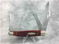 2-3/4 inches closed. 5 inches open. Made in USA. "CASE XX USA **** " (4 dot with lightning bolt S) and "6220 SS" tang stamps. Oval "CASE-XX" shield. Stainless steel blades. Red jigged bone handle. Nickel Silver bolsters. Brass liner.