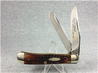 Limited Edition. 4 inches closed. 7 inches open. Made in USA. "CASE XX ********* U.S.A." (9 dot with lightning bolt S) and "6249" tang stamps. Double Oval 'Open C' CASE shield. Chrome Vanadium blades. Master blade etched "SMOKY MOUNTAIN COPPERHEADS". Brown Jigged Bone handle. Nickel Silver bolsters. Front right bolster etched with serial. Brass liner.
