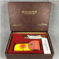Limited Edition 1 of only 1000 sets made. 2-3/4 inches closed. 5 inches open. Made in USA. "CASE XX ***SS*** USA " (6 dot with lightning bolt S) and pattern 20 tang stamps ("R6120 SS", "3120 SS", and "A6120 SS". Oval "CASE" shields. Stainless steel blades etched with image of a peanut and serial #493. Handles are red jigged bone, smooth yellow composition, and appaloosa jigged bone. Nickel Silver bolsters. Brass liners. With clam shell case and certificate of authenticity.