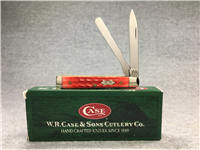 3-7/8 inches closed. 6-3/4 inches open. Made in USA. "CASE XX ******** USA" (8 dot with lightning bolt S) and "R MUSKRAT" tang stamps. Double Oval 'Open C' CASE shield. Chrome Vanadium blades etched "HAWBAKER'S SPECIAL" and "IMPROVED MUSKRAT KNIFE". Red jigged bone handle. Nickel Silver bolsters. Brass liner. No box.