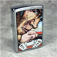 ZIPPO Lighter, 2006. Brushed Chrome finish over solid Brass with artwork on front. Standard size 1-7/16 inches wide by 2-1/4 inches high. Bottom of lighter reads: F Zippo 06 Bradford, PA. Made in U.S.A. Sealed.
