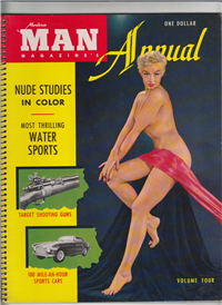 58 pages plus covers, standard size, side stapled. Black and white interior photos, a color centerfold of Bonnie Logan, as well as a full page color nude of Mamie Van Doren and one of Suzanne Bacaud.