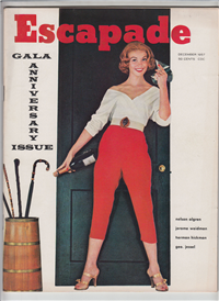 86 pages including wraps. Inspired by the success of Playboy (first issue December, 1953), Nugget was launched with this November, 1955 issue. Each had lots of photos, a wide variety of features, well-known contributors, was printed on good quality paper, and sold for the same price - 50 cents an issue.