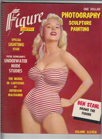 70 pages. Spiral bound. Two pages of interior color. Includes profile and nudes of Bettie Page (pages 28-31), Marilyn Monroe (pages 10-13 including nude), Sophia Loren Pages 14-16 including topless), Anita Ekberg (6-9 none nude), Jayne Mansfield (17-21 none nude), Eartha Kitt (22-23 no nudes), Betty Bromser (24-27 no nudes), also photo spreads featuring Lili St. Cyr, Lilly Christine, Evelyn West, Tempest Storm, Gwen Verdon, Mejla Ates, Monique Van Vooren, Meg Myles. Photography portfolios by De Dienes, Zoltan Glass and others.