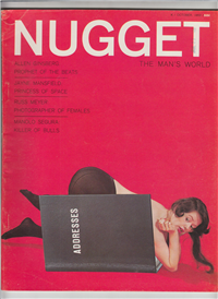 64 pages plus covers, standard size, side stapled. Black and white interior photos with a color centerfold of Bunny Bacon and several other color photos as well as an article on Jayne Mansfield.