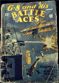 Cover by F. Tinsley. Includes "Death Rides The Sky" by George L. Eaton.