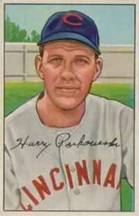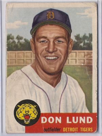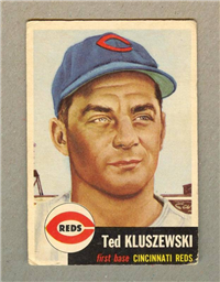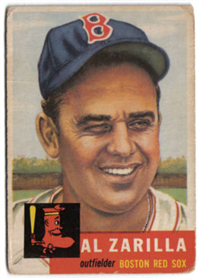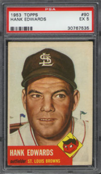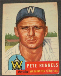 Issued as part of the 1953 Topps set of baseball cards, which reflects the company's continuing legal battles with Bowman. The set, originally intended to consist of 280 cards, is lacking six numbers (numbers 253, 261, 267, 268, 271, and 275) which probably represent players whose contracts were lost to the competition. The 2-5/8" by 3-3/4" cards feature painted player pictures. A color team logo appears at the bottom panel (red for American League and black for National). Card backs contain the first baseball trivia questions along with brief statistics and player biographies. In the red panel at the top which lists the player's personal data, cards from the 2nd Series (numbers 86-165 plus 10, 44, 61, 72, and 81) can be found with that data printed in either black or white, black being the scarcer variety. Card numbers 221-280 are the scarce high numbers.
