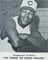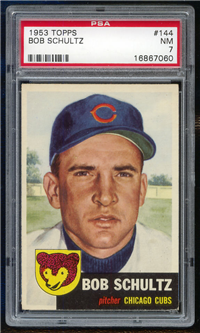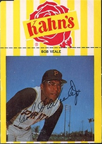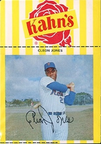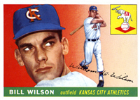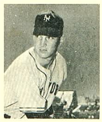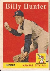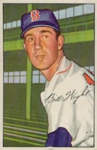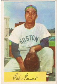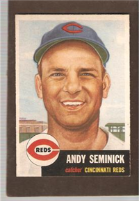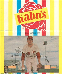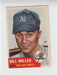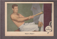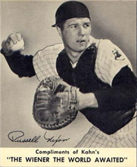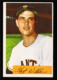 2 5/8" by 3 3/4" Unnumbered. Front: Colorized portraits, player's name, team and position at top, facsimile autograph and color image of package of Wilson Franks. Back: Personal biography, 1953 statistics and career statistics.