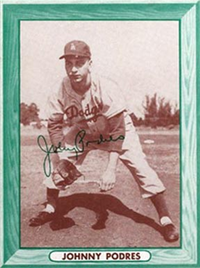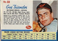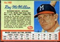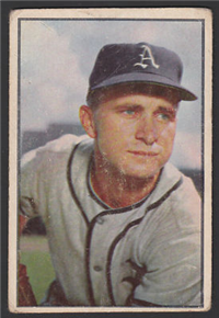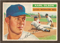 This card was one of 340 cards issued in the 1956 Topps Baseball Card set. The card set is quite similar to the 1955 Topps set, again using both a portrait and an "action" picture. Some portraits are the same as those used in 1955 (and even 1954). Innovations found in the 1956 Topps set of 2-5/8" by 3-3/4" cards include team cards introduced as part of a regular set. Additionally, there are two unnumbered checklist cards. Finally, there are cards of the two league presidents. William Harridge and Warren Giles. On the backs, a three-panel cartoon depicts big moments from the player's career while biographical information appears above the cartoon and the statistics below. Card backs for numbers 1-180 can be found with either white or grey cardboard. Some dealers charge a premium for grey backs (numbers 1-100) and white backs (101-180).