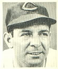 Front: Sepia player photo with lower border white strip containing player's last name, team and league.