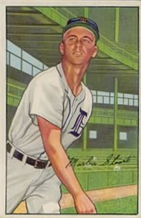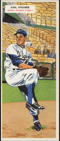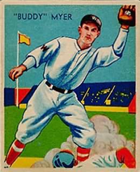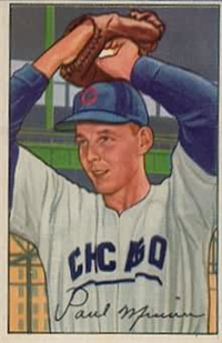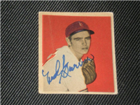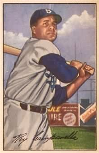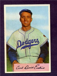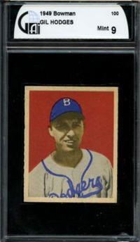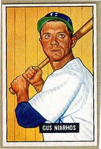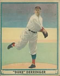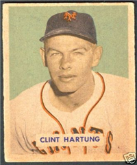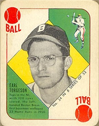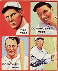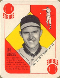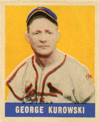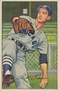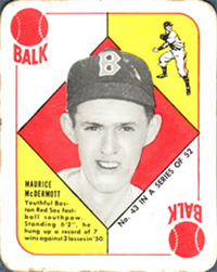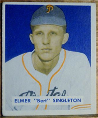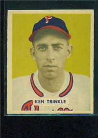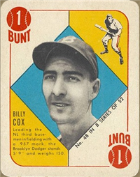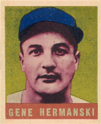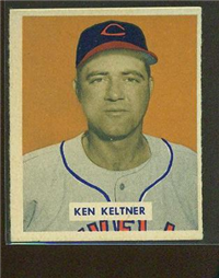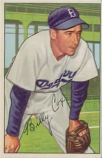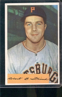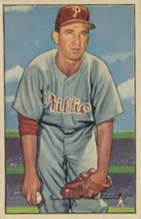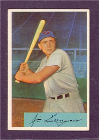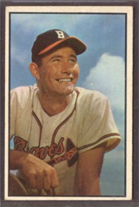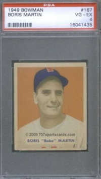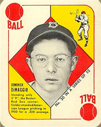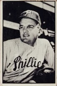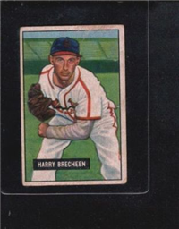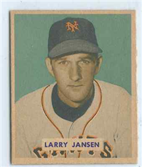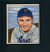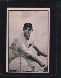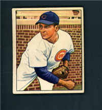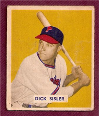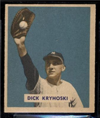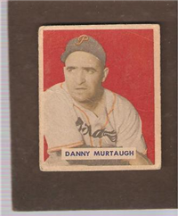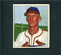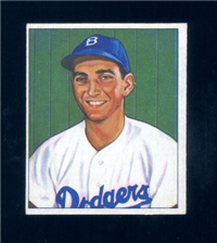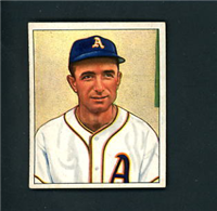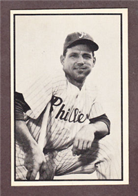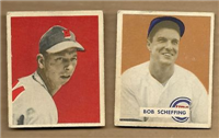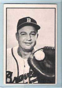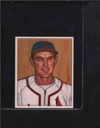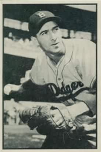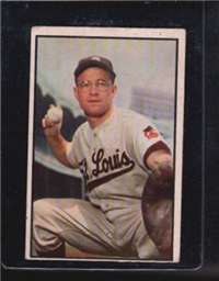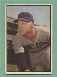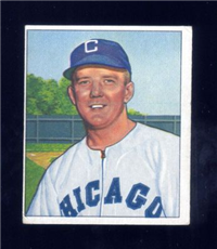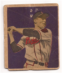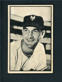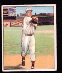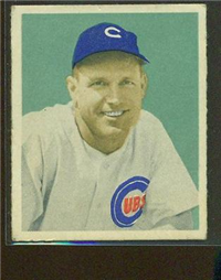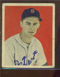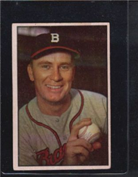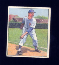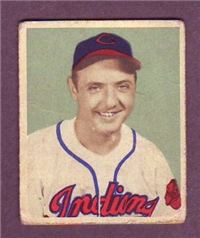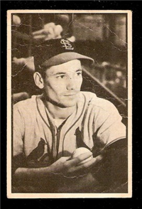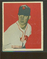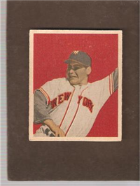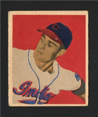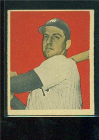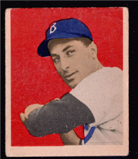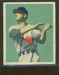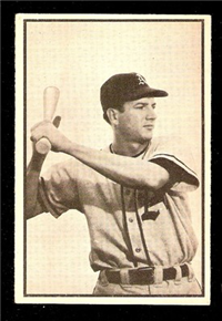 Bowman Gum Co.'s premiere set was produced in 1948, making it one of the first major issues of the post war period. Forty-eight black and white cards comprise the set, with each card measuring 2-1/6" by 2-1/2" in size. The card backs, printed in black ink on grey stock, include the card number and the player's name, team, position, and a short biography. Twelve cards (#'s 7, 8, 13, 16, 20, 22, 24, 26, 29, 30 and 34) were printed in short supply when they were removed from the 36-card printing sheet to make room for the set's high numbers (#'s 37-48). These 24 cards command a higher price than the remaining cards in the set.