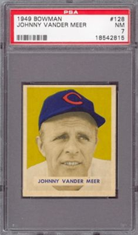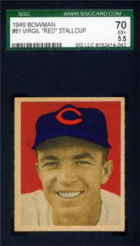In 1949, Bowman increased the size of its issue to 240 numbered cards. The cards, which measure 2-1/16" by 2-1/2 inch are black and white photos over-printed with various pastel colors. Beginning with card #109 in the set, Bowman inserted the players' names on the card fronts. Twelve cards (#'s 4, 78, 83. 84, 88, 98, 109, 124, 127, 132 and 143), which were produced in the first four series of printings, were reprinted in the seventh series with either a card front or a back modification. These variations are noted in the checklist that follows. Card #'s 1-3 and 5-73 can be found with either white or grey backs. The complete set of value in the following checklist does not include the higher priced variation cards.