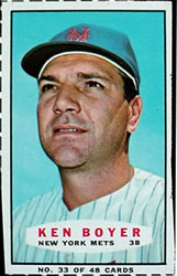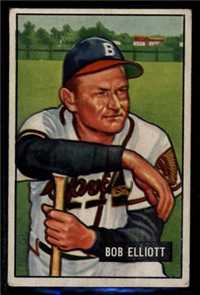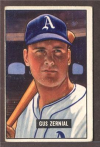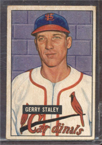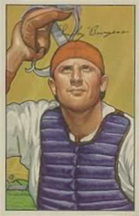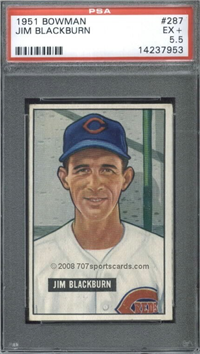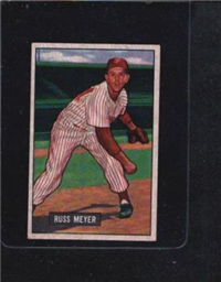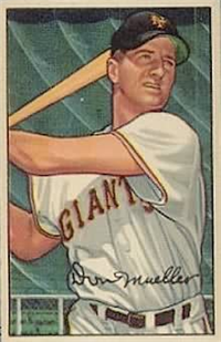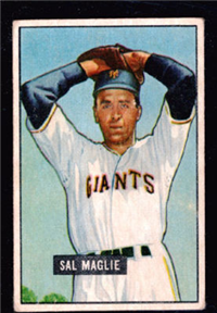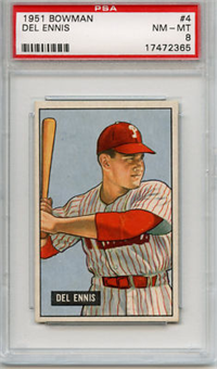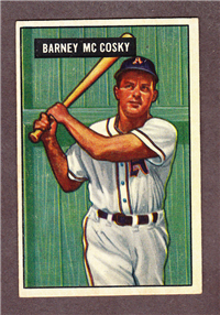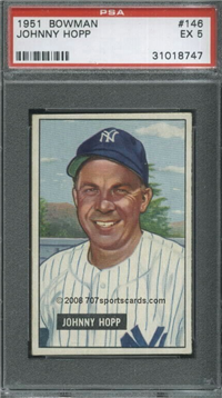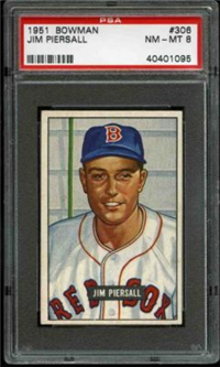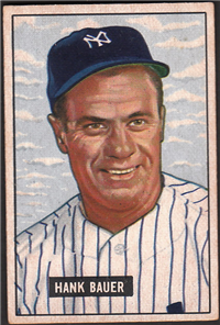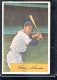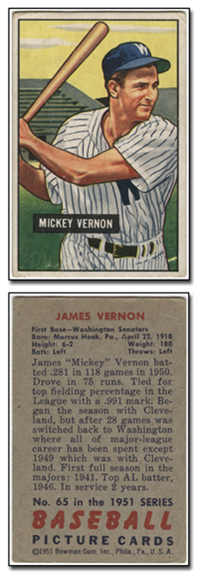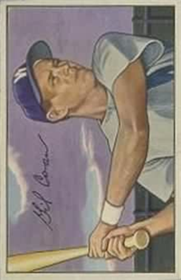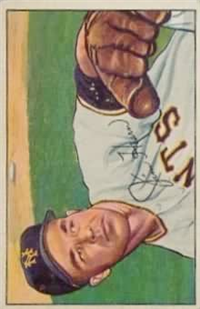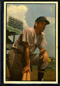In 1951, Bowman increased the number of cards in its set for the 3rd consecutive year when it issued 324 cards. The cards are, like 1950, color art reproductions of actual photographs but now measure 2-1/16" by 3-1/8" in size. The player's name is situated in a small, black box on the card front. Several of the card fronts are enlargements of the 1950 version. The high-numbered series of the set (#'s 253-324), which includes the rookie cards of Mantle and Mays, are the scarcest of the issue.