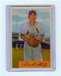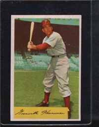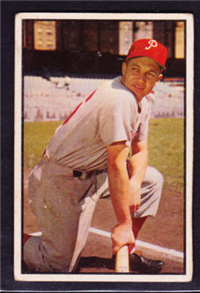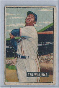 The 1954 Bowman set consists of 224 full color cards that measure 2-1/2" by 3-3/4". It is believed that contractual problems caused the pulling of card #66 (Ted Williams) from the set, creating one of the most sought-after scarcities of the postwar era. The Williams card was replaced by Jim Piersall (who is also #210) in subsequent print runs. The set contains over 40 variations, most involving statistical errors on the card backs that were corrected. On most cards neither variation carries a premium value as both varieties appear to have been printed in equal amounts. The complete set price does not include all of the variations of #66 Williams.