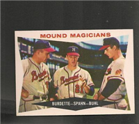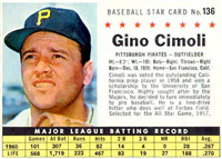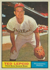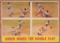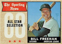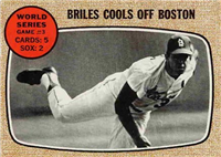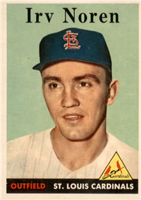 This card is one of the 494-card set released in 1958--as Topps continued to expand its set in size. One card (# 145) was not issued after Ed Bouchee Was suspended from baseball. Cards retained the 2-1/2" by 3-1/2" size. There are a number of variations, including yellow or white lettering on 33 cards between numbers 2-108 (higher priced yellow letter variations that are checklisted, are not part of the complete set prices). The number of multiple-player cards was increased. A major innovation is the addition of 20 "All-Star" cards. For the first time, checklists were incorporated into the numbered series, as the backs of team cards.
