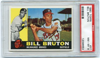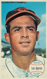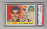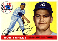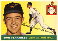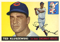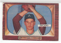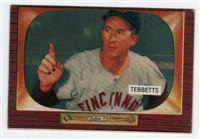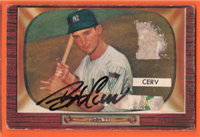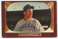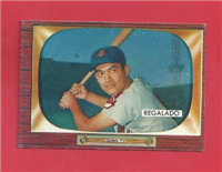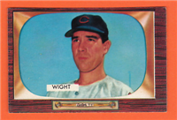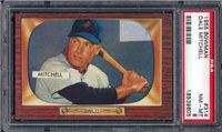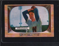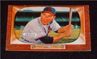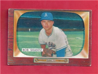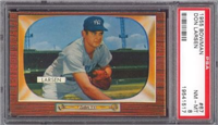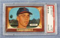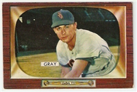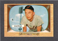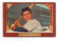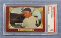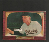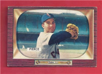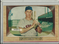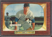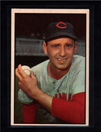 Bowman produced its final baseball card set as an independent card maker in 1955, a popular issue which has color player photographs placed inside a television set design. The set consists of 320 cards that measure 2-1/2" by 3-3/3" in size. High-numbered cards (#'s 225-320) appear to have replaced certain low-numbered cards on the press sheets and are somewhat scarcer. The high series includes 31 umpire cards.