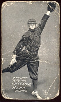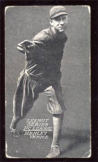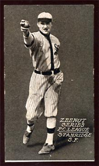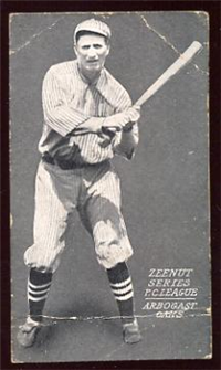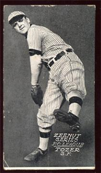 Little is known about the origin of this 50-card set issued in 1914 and designated as E224 in the American Card Catalog. Measuring 2 3/8" by 3 1/2", the front of the cards feature sepia-toned photos with the player's name in capital letters and his team below in parentheses. The back carries a biography and nmost cards, though not all, include year-by-year statistics at the bottom. The words "Texas Tommy" appear at the top, apparently referring to the sponsor of the set, although it is still unclear who or what "Texas Tommy" was, and despite its name, most examples of this set have been found in northern California. There is also a second variety of the set, smaller in size (1 7/8" by 3") which are borderless pictures with a glossy finish.