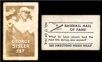 1 3/8" by 2 1/2" Numbered. Front: Black and white player photo with card number and player name below. Back: Advertisement.