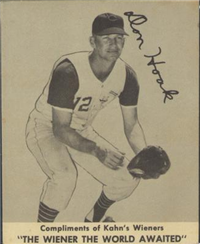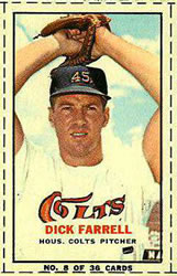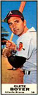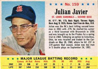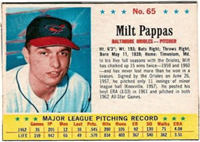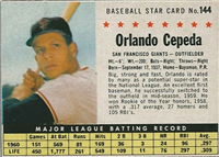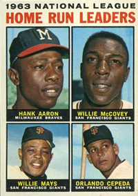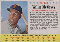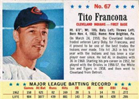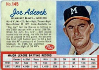A lawsuit by Topps stopped Fleer's 1963 set at one series of 66 cards. Issued with a cookie rather than gum, the set features color photos of current players. The card backs include statistical information for 1962 and career plus a brief player biography. The cards, which measure 2-1/2" by 3-1/2", are numbered 1-66. Ab unnumbered checklist was issued with the set and is included in the complete set price in the checklist that follows. The checklist and #46 Adcock are scarce.