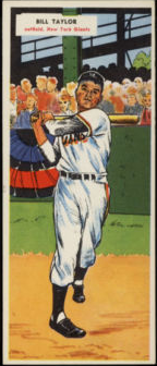 1 3/8" by 2 1/2" Numbered. Front: Crude color drawing of player, name, position, team and league below, card number in lower portion of image area. Back: Blank.