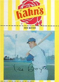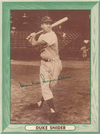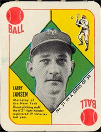 3 1/4" by 4 1/2" feature players from the New York baseball teams of the day. Unnumbered. Front: color photo with player name and facsimile autograph. Back: Promotion and statistics.