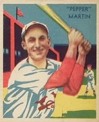 1 3/4" by 2 3/8" Un-Numbered. Stamp originally from a single sheet of 30 with an album, issued in commemoration of the 1943 World Series win. Full color with player's name in white on a red strip at bottom.