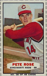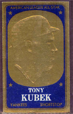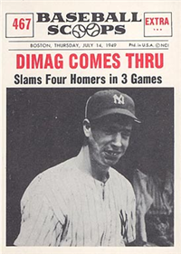 The first ever set of Topps Baseball Cards appeared as a subset of 19 cards from an issue of 252 "Magic Photo" cards. The set takes its name from the self-developing nature of the cards. The cards were blank on the front when first taken out from the wrapper. By spitting on the wrapper and holding it to the card while exposing it to light, the black and white photo would appear. Measuring 7/8" by 1 1/2", the cards are very similar to Topps 1956 "Hocus Focus" cards.