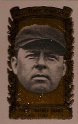 5 3/4" by 8". Front: Full color lithograph with wide gray border. Back: Player biography and advertisement for smoking tobacco. Obtained by mailing in coupons found in Turkey Red, Fez and Old Mill cigarettes.