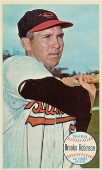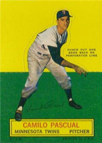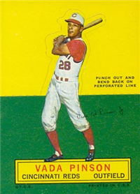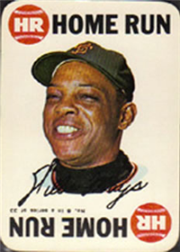 Probably the least popular of all Topps products among parents and teachers, the Topps Tattoos were delightful little items on the reverse of the wrappers of "Topps Tattoo Bubble Gum." The entire wrapper was 1-9/16" by 3-1/2". The happy owner simply moistened his skin and applied the back of the wrapper to the wet spot. Presto—out came a "tattoo' in color (although often blurred by running colors). The set offered 96 tattoo possibilities of which 55 were players, 16 teams, 15 action shots, and 10 autographed balls. Surviving specimens are very rare today.