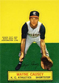 1 3/8" by 2 1/2" Similar to York Caramel E210 cards. Numbered. Front: Black and white player photo, name and card number below. Back: Game related term such as "One Bagger" or "Hone Rum".