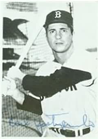 3 1/4" by 2 1/6" Unnumbered. Front: Sepia-toned photograph with player's name in script Back: blank.