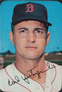 2 1/4" by 4 11/16" Front: Player lithograph with player's name in black script at upper left. Back: Player statistics against red background.