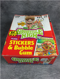 Complete Box of Grossville High sticker and bubble gum wax packs. Each of the 48 packs contains 5 stickers and 1 stick of bubble gum. All 36 packs new and unopened. (c) Fleer and Canew Ideas.