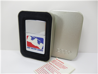 ZIPPO USA Map/American Eagle Lighter circa 1992. Brushed Chrome finish over solid Brass with front emblem. Standard size 1-7/16 inches wide by 2-1/4 inches high. Bottom of lighter reads: K Zippo VIII Bradford, PA. Made in U.S.A. Includes original K/VIII unfired insert and Zippo box.