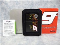 ZIPPO Rusty Wallace circa 1996. Black matte enamel finish with raised emblem. Standard size 1-7/16 inches wide by 2-1/4 inches high.