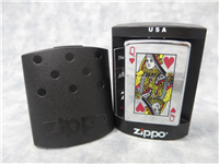 ZIPPO Queen of Hearts Lighter circa 2005. Polished Chrome finish over solid Brass with color printed front design. Standard size 1-7/16 inches wide by 2-1/4 inches high. Bottom of lighter reads: A Zippo 05 Bradford, PA. Made in U.S.A. Includes original, unfired insert.
