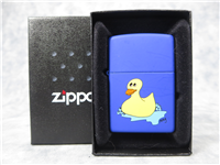 ZIPPO Rubber Ducky Lighter manufactured in 2004. Blue Matte finish over solid Brass with color printed front design. Standard size 1-7/16 inches wide by 2-1/4 inches high. Base reads: E Zippo 04 Bradford, PA. Made in U.S.A. Includes original, unfired insert.