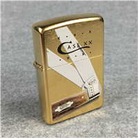 ZIPPO Lighter. Gold dust finish over solid brass with image of a Case XX trapper knife. Standard size 1-7/16 inches wide by 2-1/4 inches high. Bottom of lighter reads: A Zippo 12 Bradford, PA. Made in U.S.A. Sealed, no box.